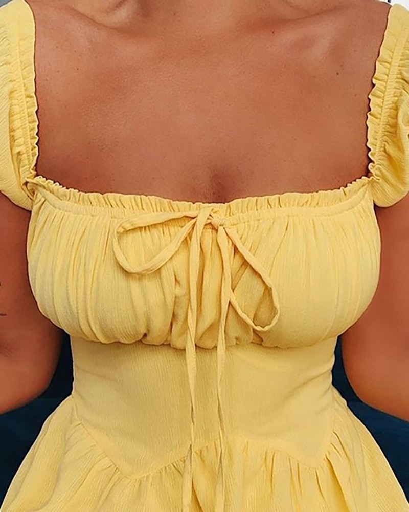 Retro Short Sleeve Puff Sleeve Shoulder Dress