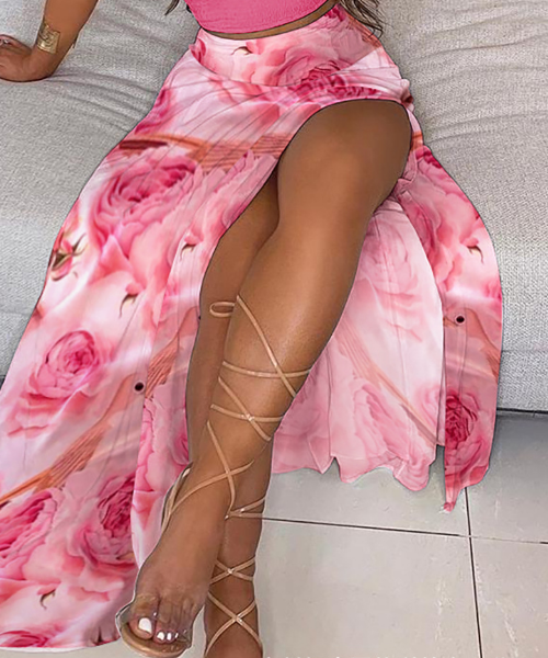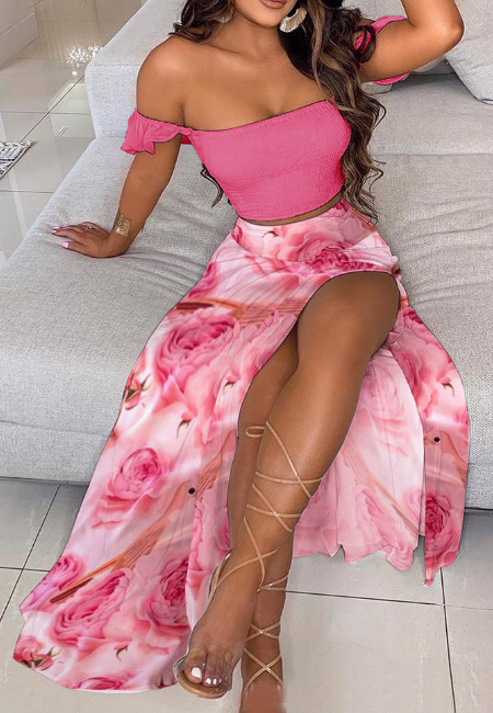 Long Sleeve Print Button Pocket Shorts Two-piece Set