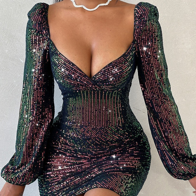 Retro Short Sleeve Puff Sleeve Shoulder Dress