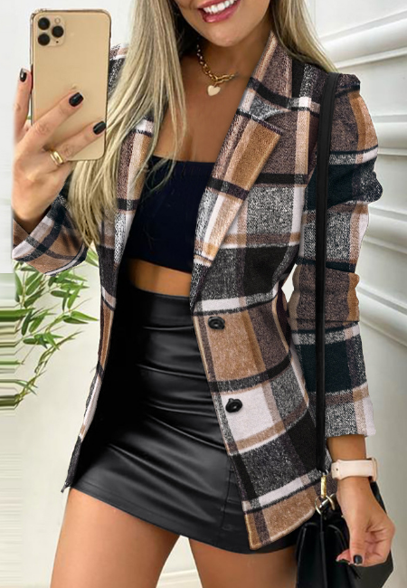 Temperament Check Long Sleeve Casual Shirt Tops