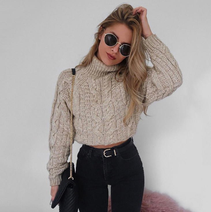 Women Long Sleeve Sexy High-Necked Knit Sweater