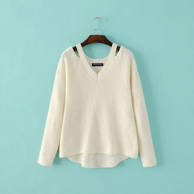 Moonshine Ribbed V Neck Long Sleeves Loose Waffle Knit Flared Sweater