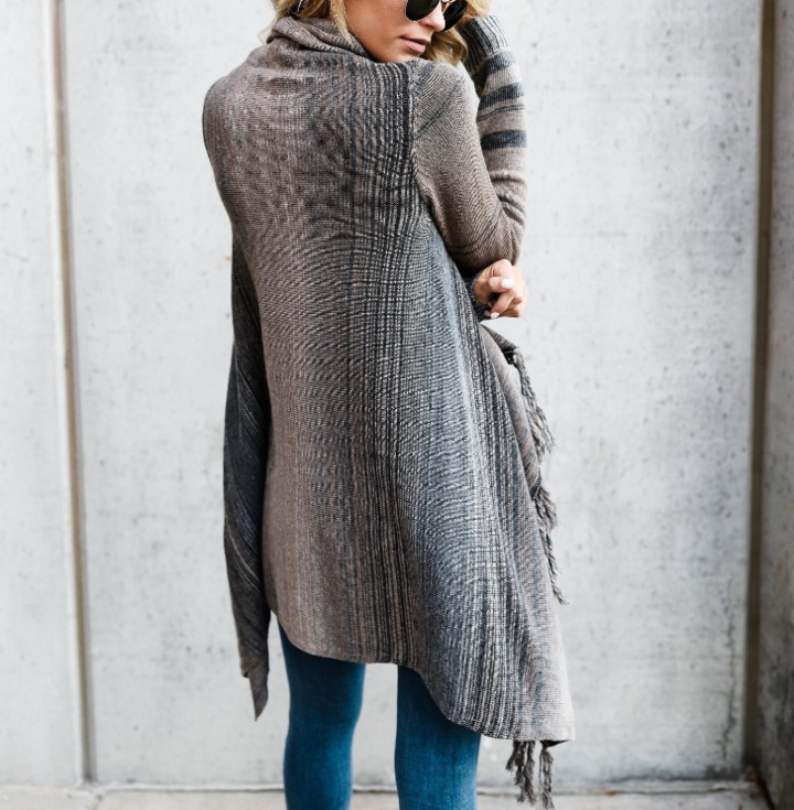 Long Sleeve Striped Cardigan Sweater Coat