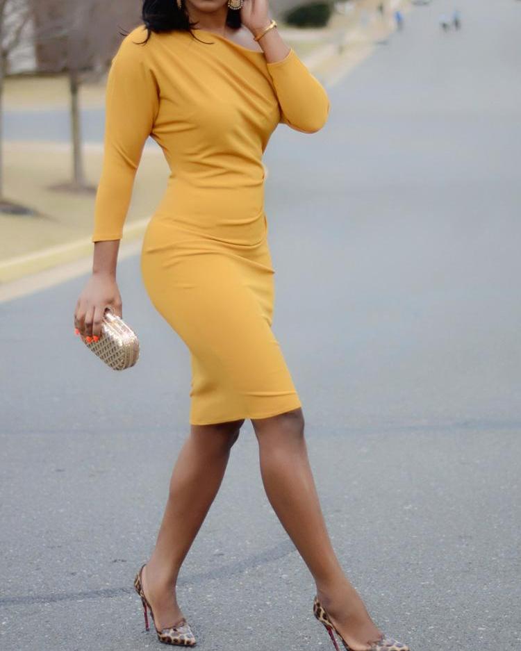 Solid Color Long Sleeve Dress