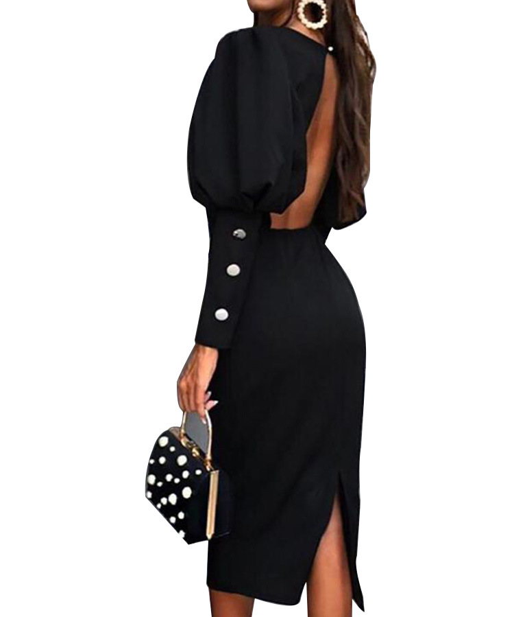 Women'S Sexy Round Neck Fashion Long Sleeves Backless Dress