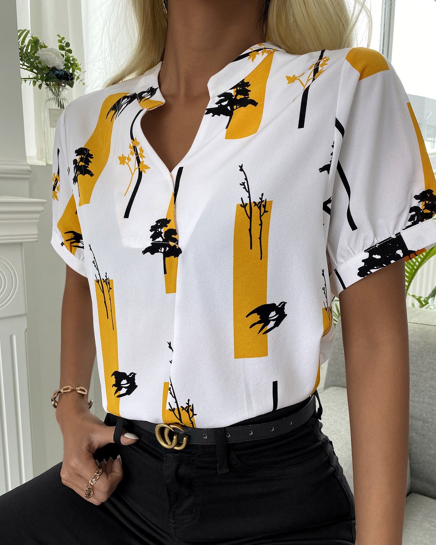Fashion V-Neck Short Sleeve Printed Casual Shirt Top