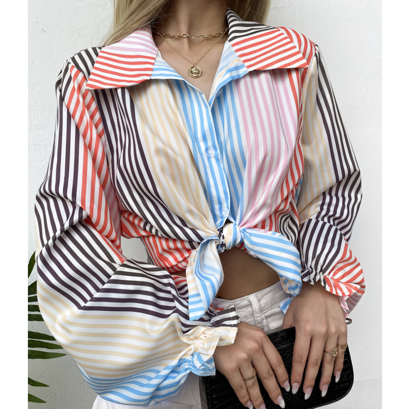 Long Sleeve Stripe Print Chiffon Blouse