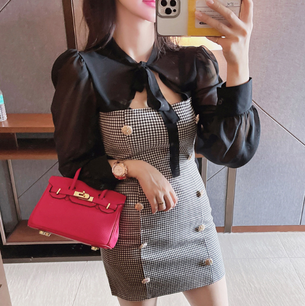 Female Slim Temperament Bird Lattice Bag Hip Dress