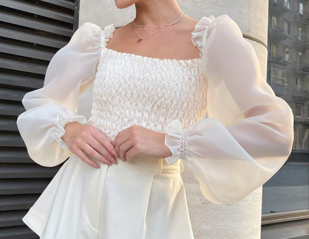 Long-Sleeve Chiffon Temperament Puff Sleeve Shirt Top
