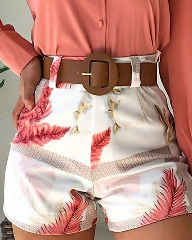 Fashion Casual Solid Color Long Sleeve Printed Shorts Two Piece Suit