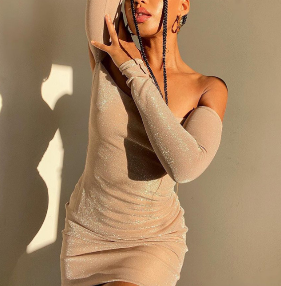 One-Shoulder Tube Top Solid Color Sexy Temperament Long-Sleeved Dress