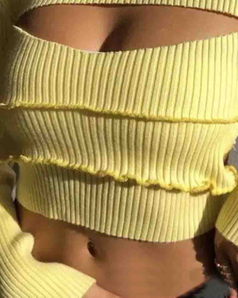 Solid Color Women's Long Sleeve Yellow Top