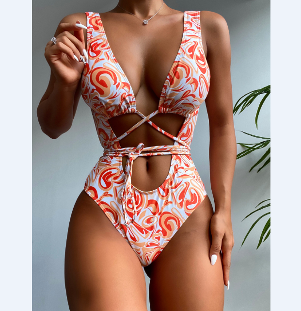 Fashion Sexy Print Skinny Backless One-Piece Swimsuit