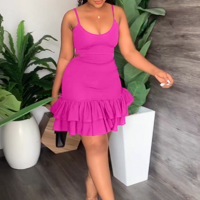 Fashion Casual Sling Low Cut Ruffle Edge Package Hip Dress