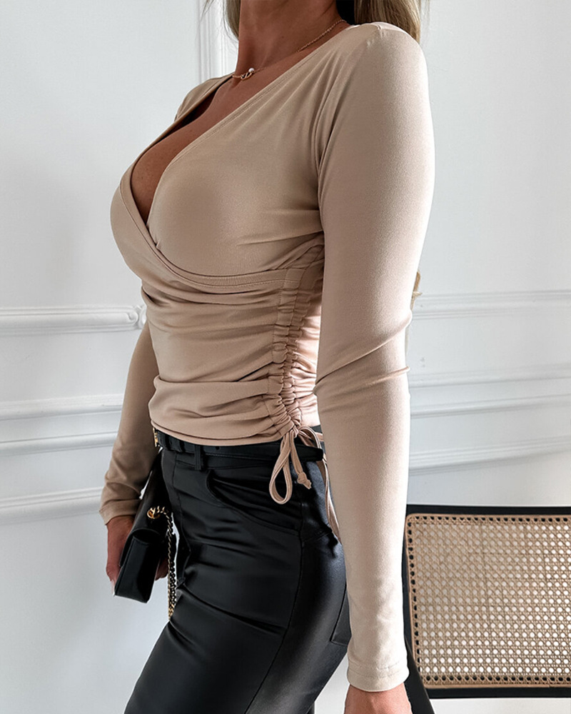 Fashion Solid Color Women'S Printed Long Sleeved Shirt